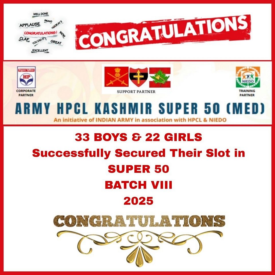 The Super 50 program continues to shine brighter with each passing day, creating success stories that inspire thousands of other young minds across the country. This is more than just a coaching program, it's a ladder to success, built with the strength of army discipline and the wisdom of experienced professionals.